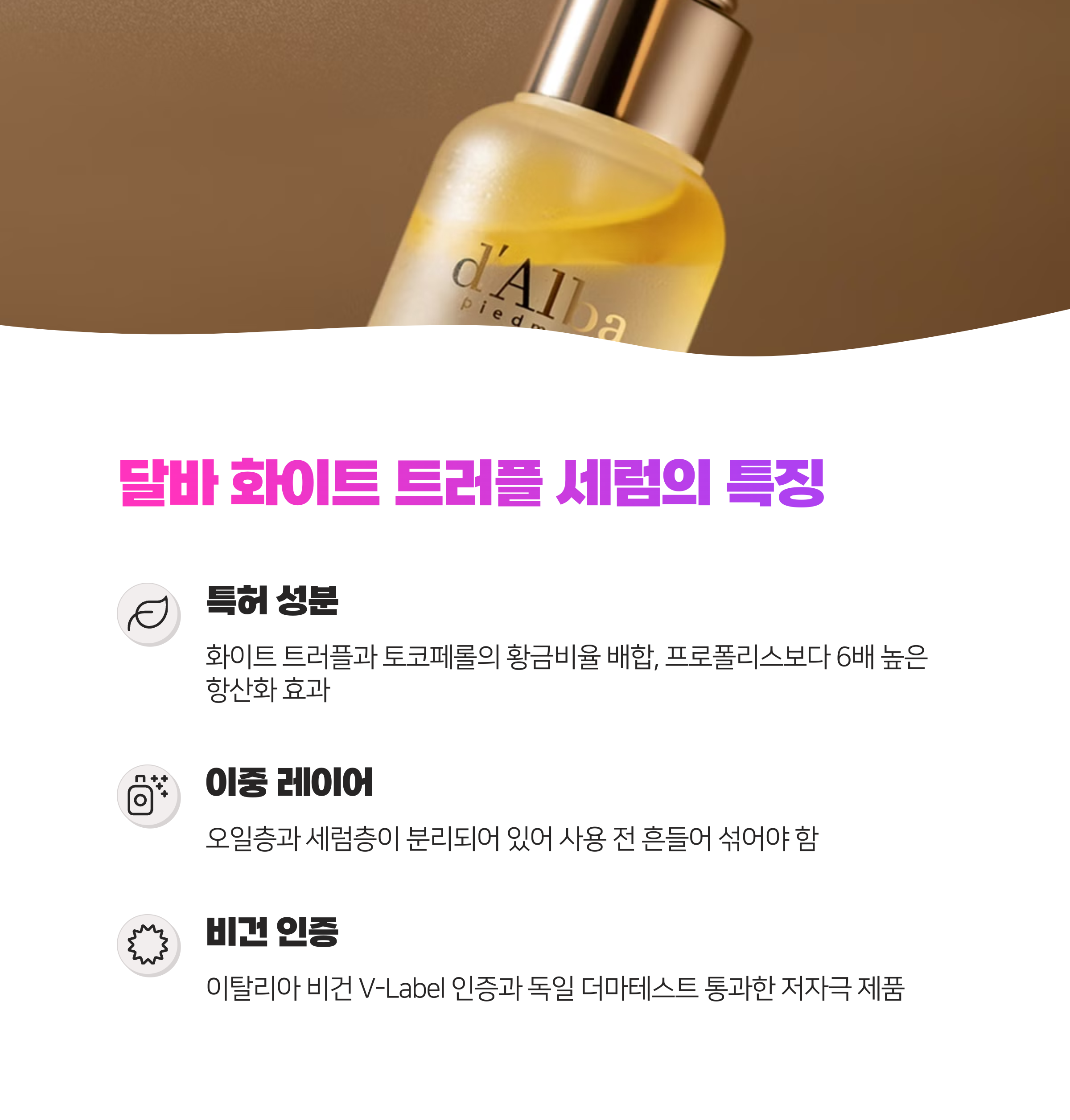 | 주요 성분 | 화이트 트러플, 토코페롤 | 프로폴리스 추출물 |