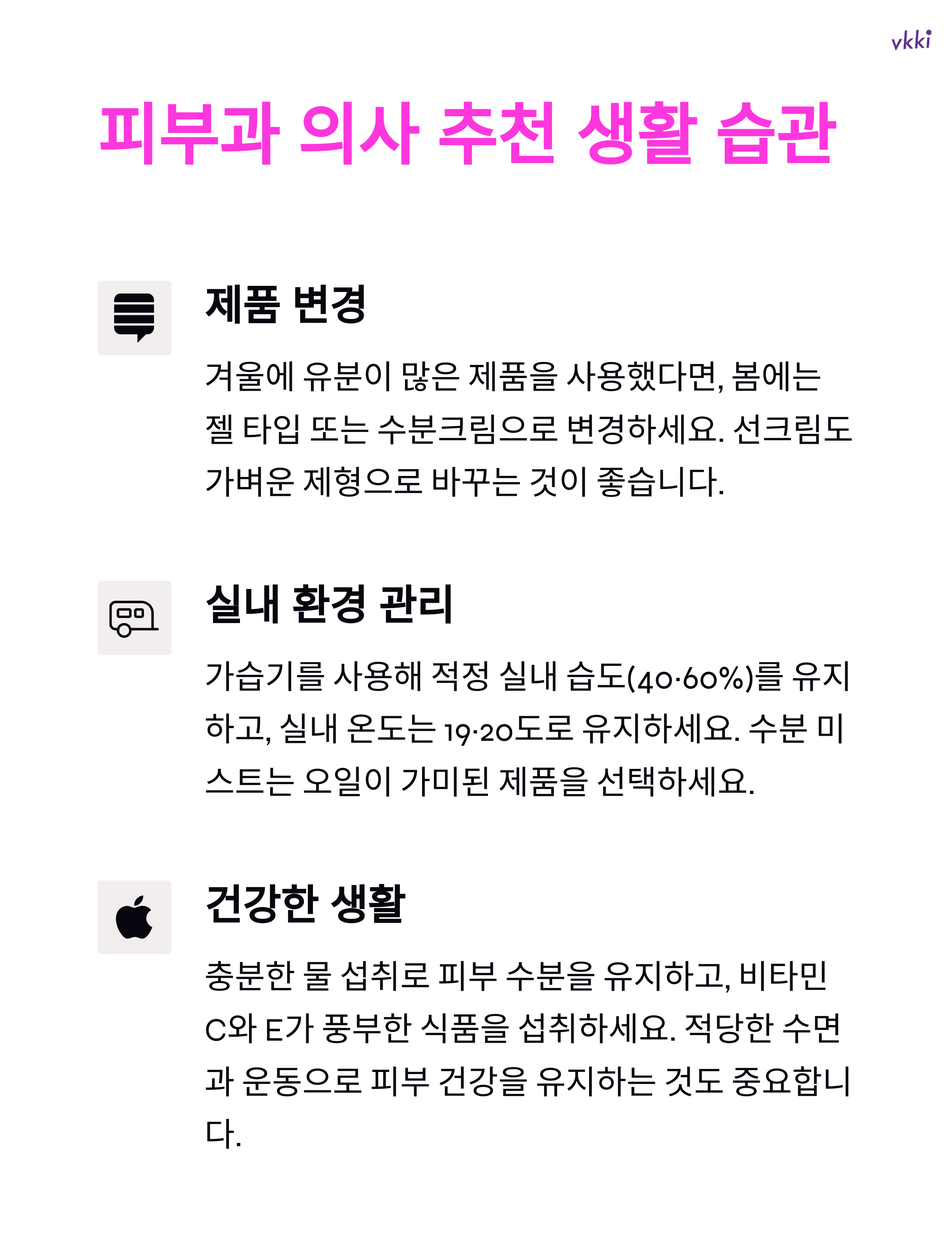 봄철에도 기온 변화로 피부가 건조해질 수 있어 보습이 매우 중요합니다.