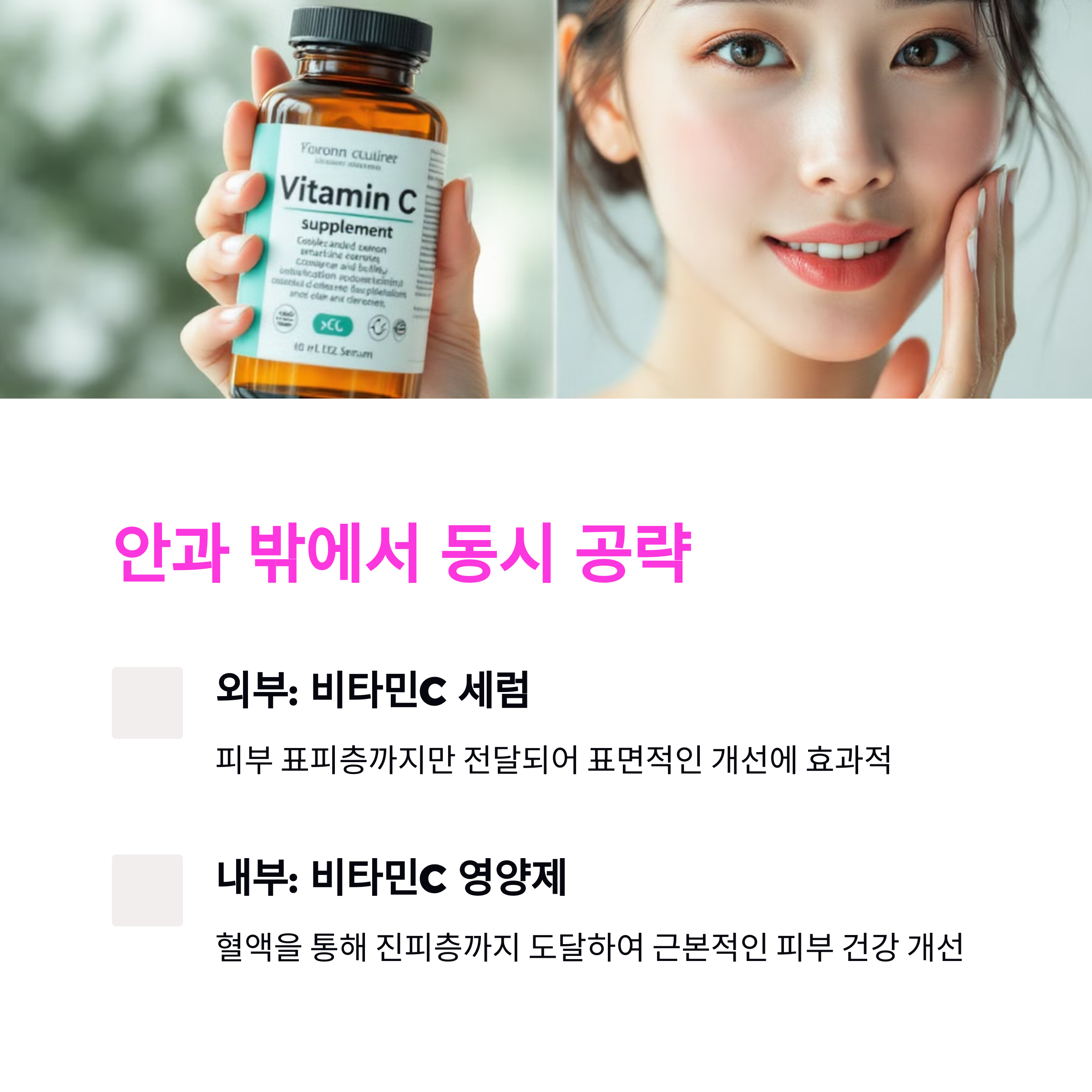 - 비타민C 세럼과 비타민C 영양제를 함께 사용하면 좋습니다