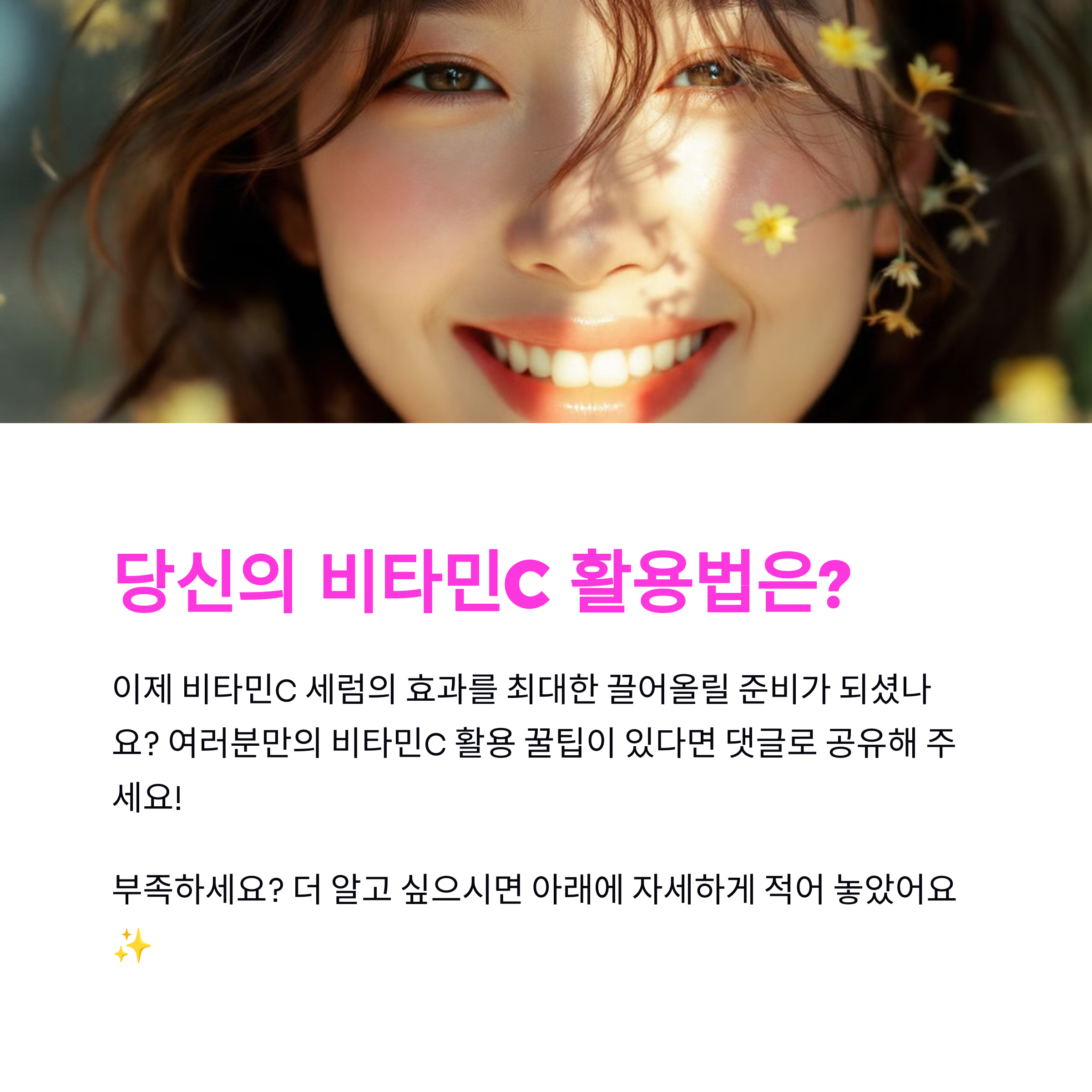 비타민C 세럼 사용 시 흡수율을 높이는 방법을 알고 계셨나요? 도움이 되셨다면 주변 분들에게도 공유해주세요! 😊