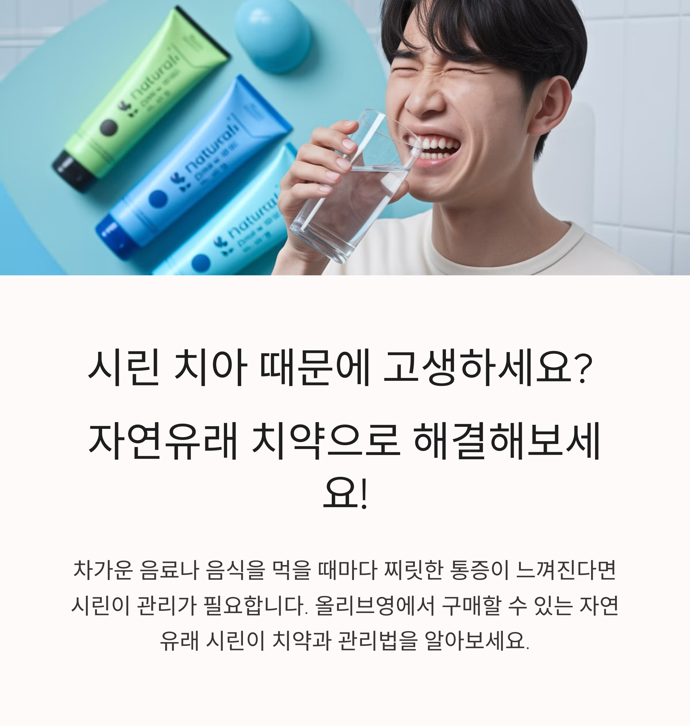 시린 치아로 고생하고 계신가요? 차가운 음료나 음식을 먹을 때마다 찌릿한 통증이 느껴진다면 시린이 관리가 필요한 때입니다. 오늘은 올리브영에서 구매할 수 있는 자연유래 성분의 시린이 치약과 효과적인 관리법을 소개해 드릴게요.
