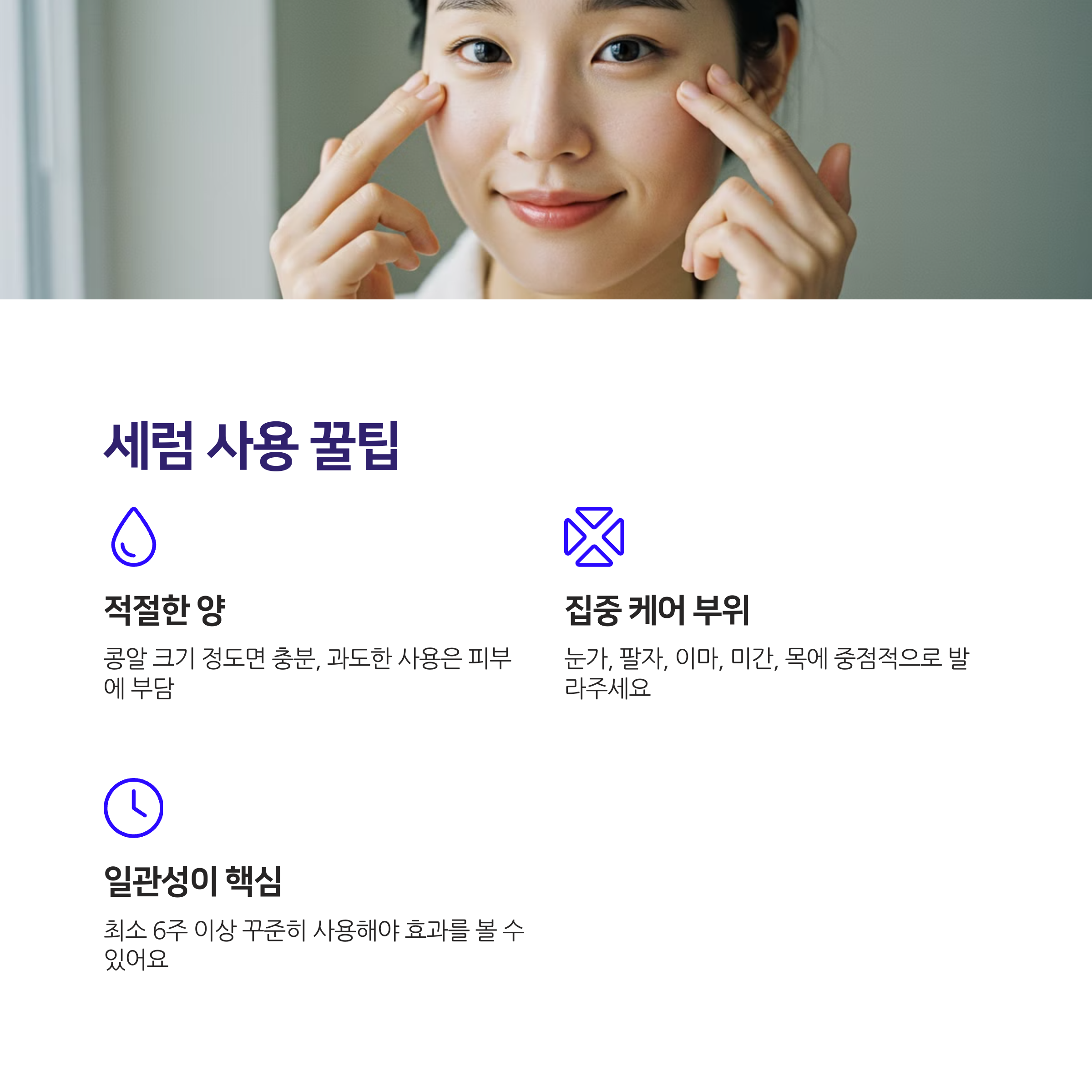 • 일관성이 핵심: 효과를 보려면 최소 6주 이상 꾸준히 사용해야 해요.