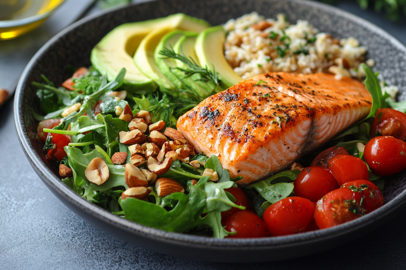 - 점심에 연어와 같은 오메가-3가 풍부한 생선과 샐러드 먹기