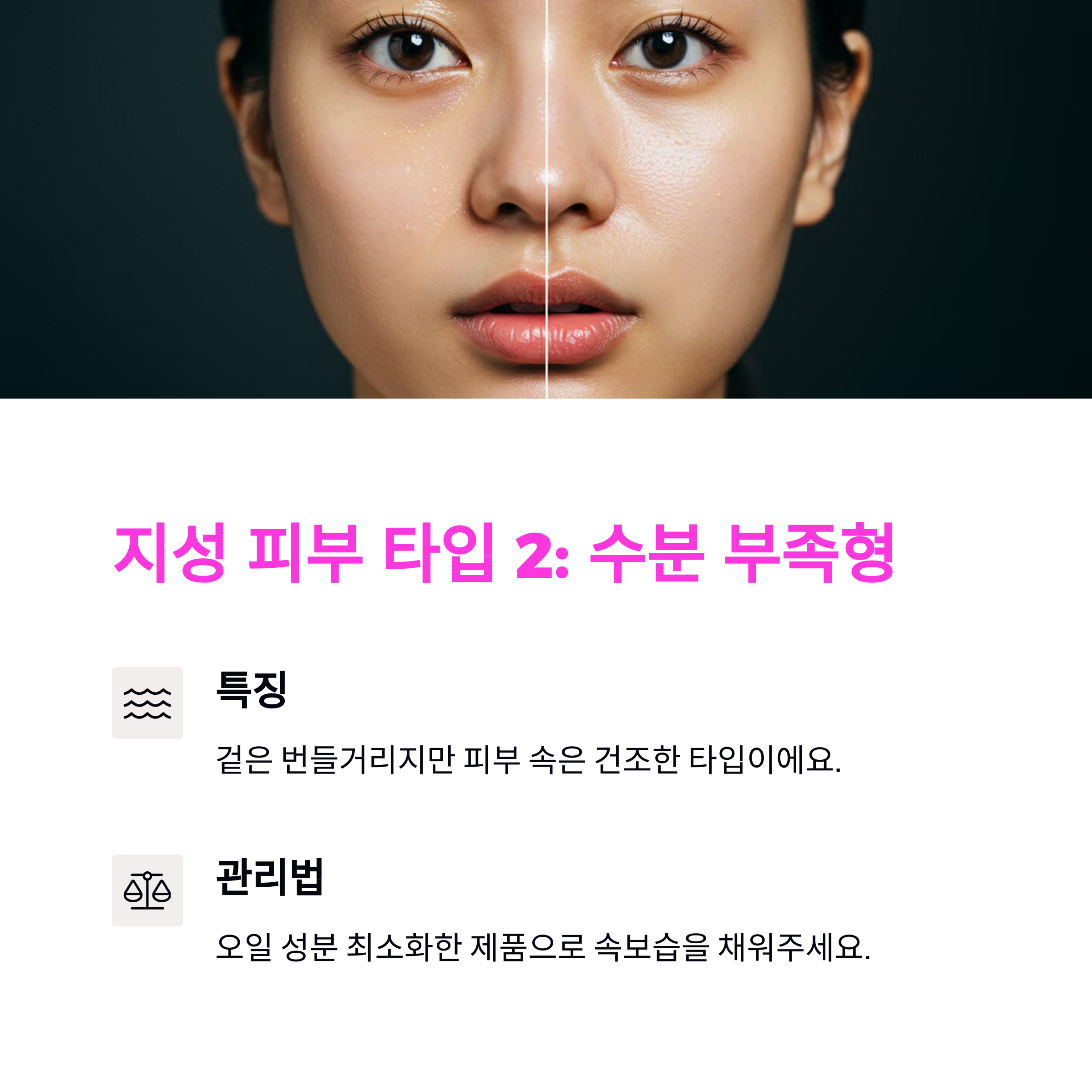 지성 피부라고 해서 다 같은 지성 피부가 아니에요! 크게 두 가지 타입으로 나눌 수 있어요.