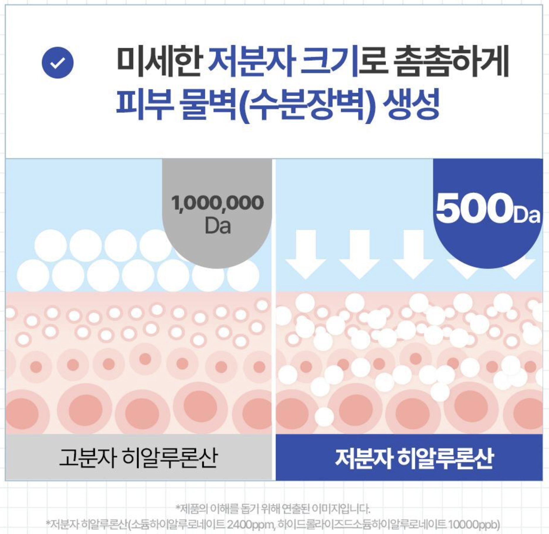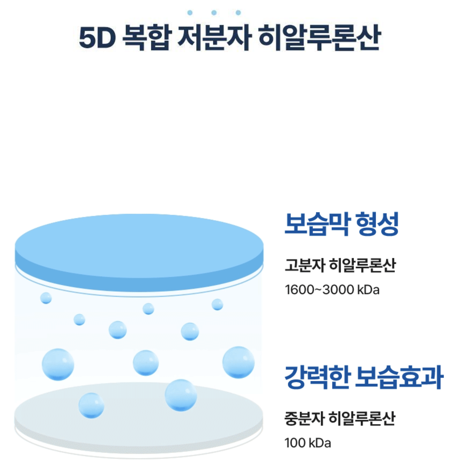핵심 성분: 5D 복합 저분자 히알루론산, 판테놀, 알란토인, 마데카소사이드