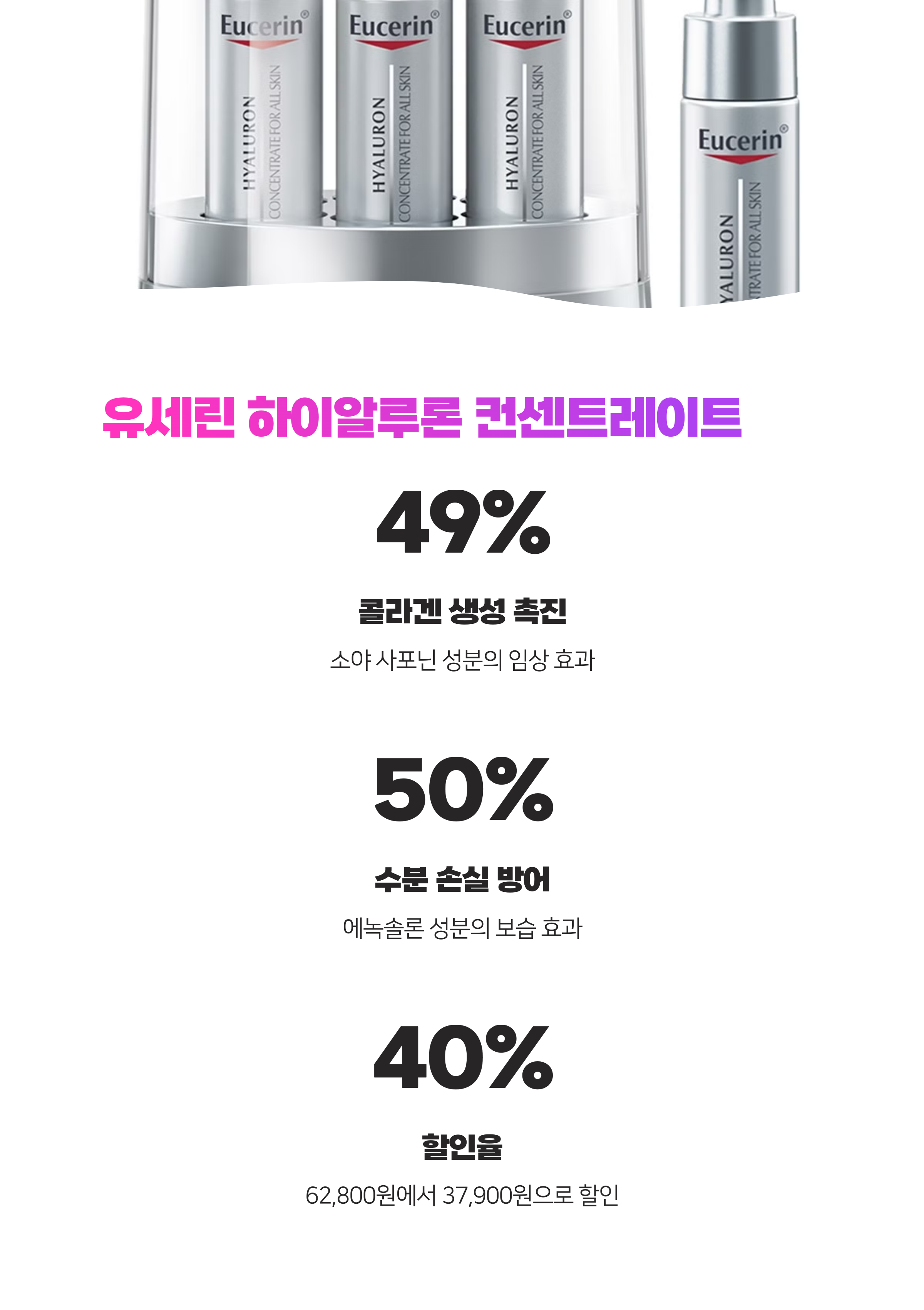 유세린 하이알루론 컨센트레이트는 히알루론산을 고농축으로 담아 깊은 주름까지 채워주는 제품입니다. 고분자와 저분자 히알루론산이 동시에 작용해 보습과 탄력 강화 효과를 제공합니다.