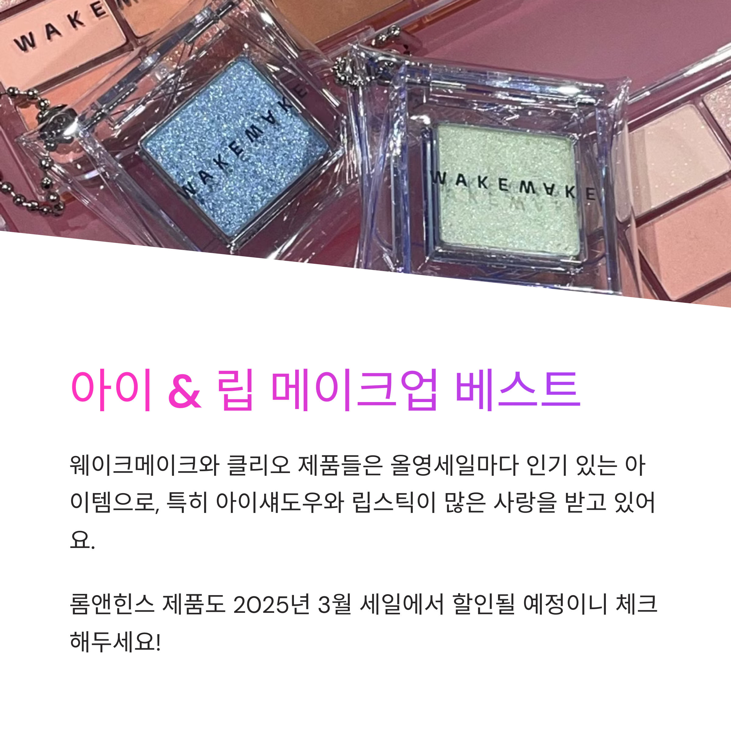 롬앤힌스 제품도 2025년 3월 세일에서 할인될 예정이니 체크해두세요!