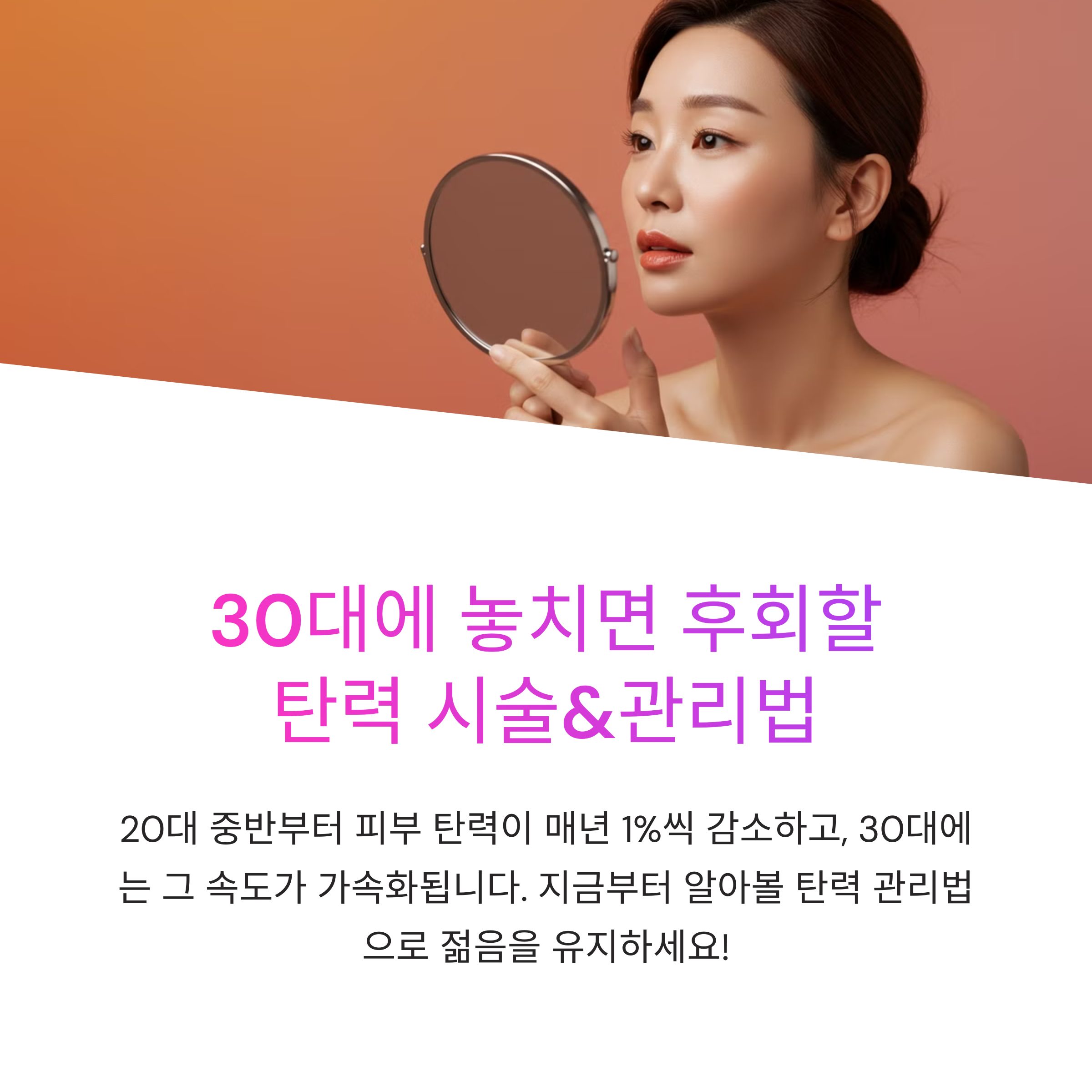 오늘은 30대에 놓치면 평생 후회할 수 있는 피부 탄력 관리법과 치명적인 탄력 회복 시술에 대해 알아볼게요! 😊